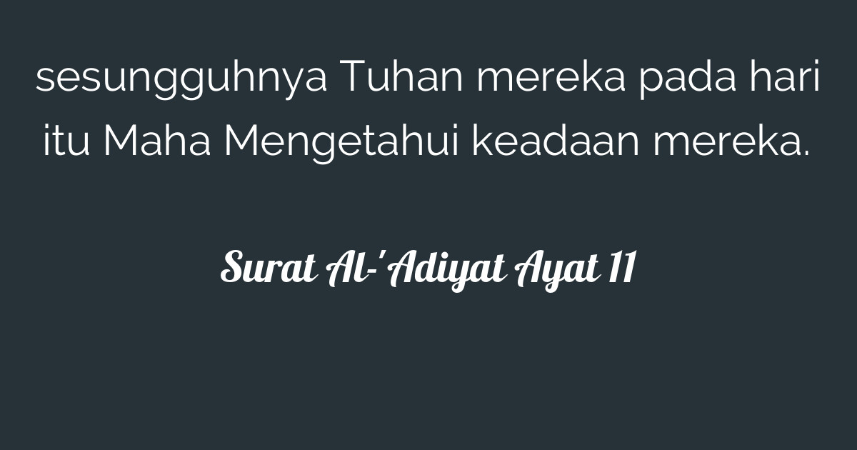 Ancaman allah swt kepada manusia yang ingkar. Arti bahasa indonesia qs al adiyat. The main theme or subject matter is to make. 11 ayat • surat ke 100 • makkiyah. Berisikan penjelasan tentang sifat manusia yang perhatian terhadap urusan dunia, sebagai pengingat baginya tentang tempat kembalinya dan sebagai motivasi baginya agar memperbaiki jalannya.
